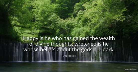 Empedocles. "Happy is he who has gained the wealth of divine thoughts, wretched is he whose beliefs about the gods are dark." FixQuotes. January 16, 2026. https://fixquotes.com/quotes/happy-is-he-who-has-gained-the-wealth-of-divine-125543/.