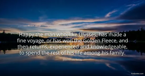 Bellay, Joachim du. "Happy the man who, like Ulysses, has made a fine voyage, or has won the Golden Fleece, and then returns, experienced and knowledgeable, to spend the rest of his life among his family." FixQuotes. January 15, 2026. https://fixquotes.com/quotes/happy-the-man-who-like-ulysses-has-made-a-fine-170927/.