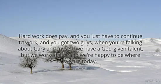 Kidd, Jason. (2026, January 15). Hard work does pay, and you just have to continue to work, and you got two guys, when you're talking about Gary and myself, we have a God-given talent, but we worked at it and we're happy to be where we are today. FixQuotes. https://fixquotes.com/quotes/hard-work-does-pay-and-you-just-have-to-continue-160356/