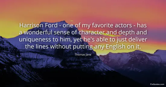 Jane, Thomas. "Harrison Ford - one of my favorite actors - has a wonderful sense of character and depth and uniqueness to him, yet he's able to just deliver the lines without putting any English on it." FixQuotes. January 16, 2026. https://fixquotes.com/quotes/harrison-ford-one-of-my-favorite-actors-has-a-119260/.