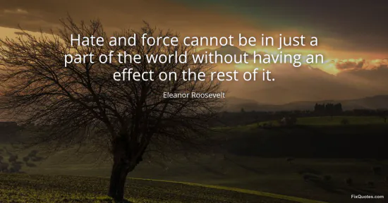 Roosevelt, Eleanor. "Hate and force cannot be in just a part of the world without having an effect on the rest of it." FixQuotes. January 18, 2026. https://fixquotes.com/quotes/hate-and-force-cannot-be-in-just-a-part-of-the-16890/.