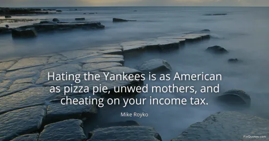 Royko, Mike. (2026, January 16). Hating the Yankees is as American as pizza pie, unwed mothers, and cheating on your income tax. FixQuotes. https://fixquotes.com/quotes/hating-the-yankees-is-as-american-as-pizza-pie-103603/