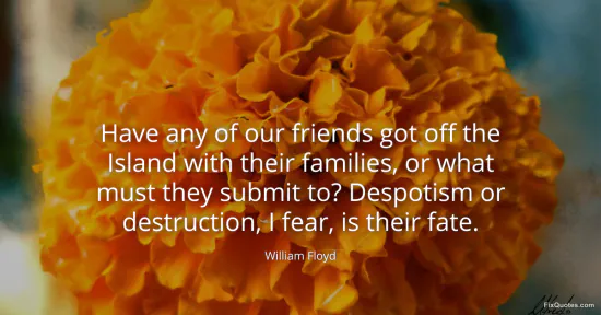 Floyd, William. (2026, January 14). Have any of our friends got off the Island with their families, or what must they submit to? Despotism or destruction, I fear, is their fate. FixQuotes. https://fixquotes.com/quotes/have-any-of-our-friends-got-off-the-island-with-170960/
