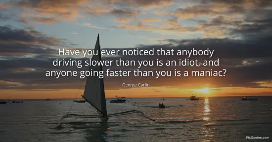 Carlin, George. "Have you ever noticed that anybody driving slower than you is an idiot, and anyone going faster than you is a maniac?" FixQuotes. February 8, 2026. https://fixquotes.com/quotes/have-you-ever-noticed-that-anybody-driving-slower-31337/.
