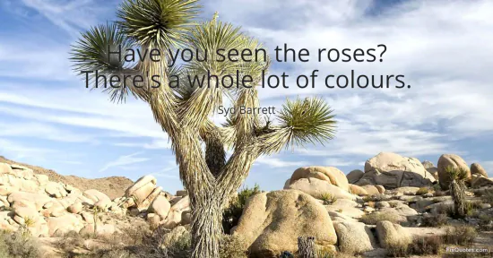 Barrett, Syd. "Have you seen the roses? There's a whole lot of colours." FixQuotes. January 17, 2026. https://fixquotes.com/quotes/have-you-seen-the-roses-theres-a-whole-lot-of-26025/.