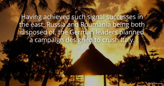 Miller, Kelly. "Having achieved such signal successes in the east, Russia and Roumania being both disposed of, the German leaders planned a campaign designed to crush Italy." FixQuotes. January 16, 2026. https://fixquotes.com/quotes/having-achieved-such-signal-successes-in-the-east-86499/.