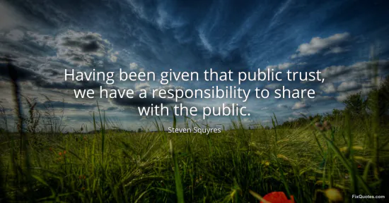 Public money comes with a moral receipt, and Steven Squyres is cashing it in. The line is blunt on purpose: “public trust” isn’t a grant number or a NASA press badge, it’s a democratic bargain. If the public underwrites the risk, the labor, and the occasional failure, scientists don’t get to treat the results like private property or insider currency. The phrasing makes that obligation feel less like PR and more like fiduciary duty: trust is something you’re “given,” not something you’re entitled to.