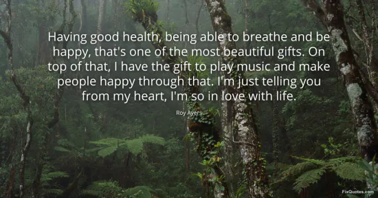 Ayers, Roy. "Having good health, being able to breathe and be happy, that's one of the most beautiful gifts. On top of that, I have the gift to play music and make people happy through that. I'm just telling you from my heart, I'm so in love with life." FixQuotes. January 16, 2026. https://fixquotes.com/quotes/having-good-health-being-able-to-breathe-and-be-122554/.