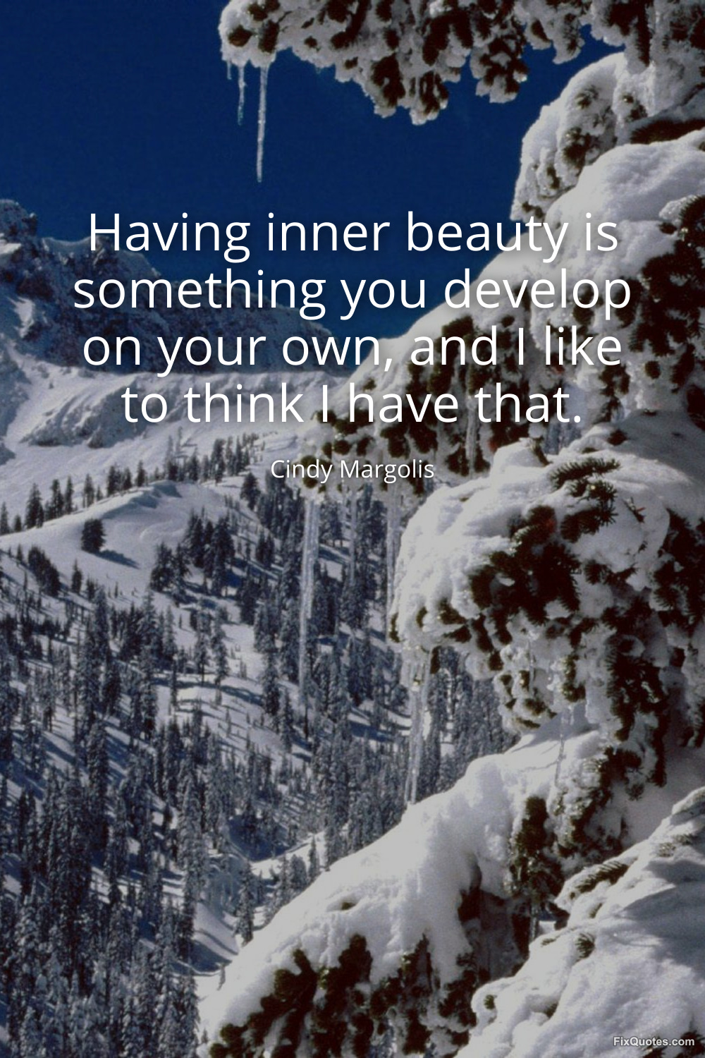 Margolis, Cindy. (2026, January 16). Having inner beauty is something you develop on your own, and I like to think I have that. FixQuotes. https://fixquotes.com/quotes/having-inner-beauty-is-something-you-develop-on-120150/