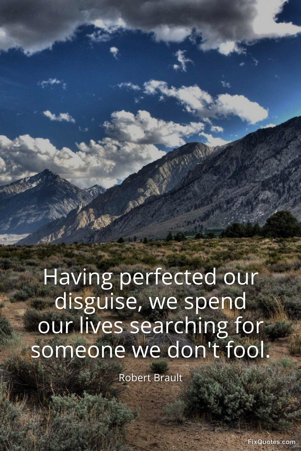 Brault, Robert. (2026, February 16). Having perfected our disguise, we spend our lives searching for someone we don't fool. FixQuotes. https://fixquotes.com/quotes/having-perfected-our-disguise-we-spend-our-lives-183912/