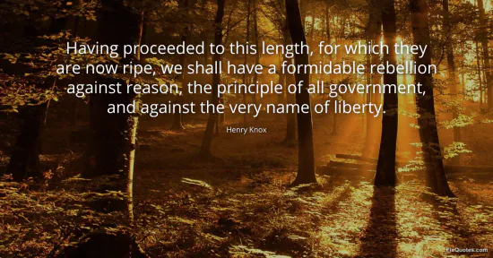 Knox, Henry. "Having proceeded to this length, for which they are now ripe, we shall have a formidable rebellion against reason, the principle of all government, and against the very name of liberty." FixQuotes. January 18, 2026. https://fixquotes.com/quotes/having-proceeded-to-this-length-for-which-they-6562/.