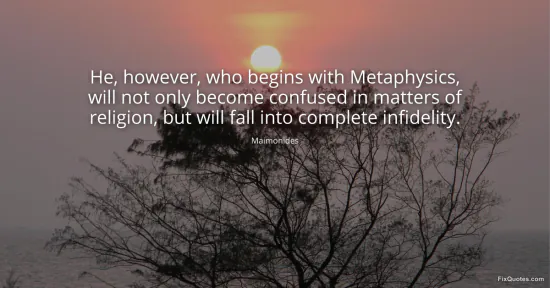 Maimonides. "He, however, who begins with Metaphysics, will not only become confused in matters of religion, but will fall into complete infidelity." FixQuotes. January 16, 2026. https://fixquotes.com/quotes/he-however-who-begins-with-metaphysics-will-not-84677/.