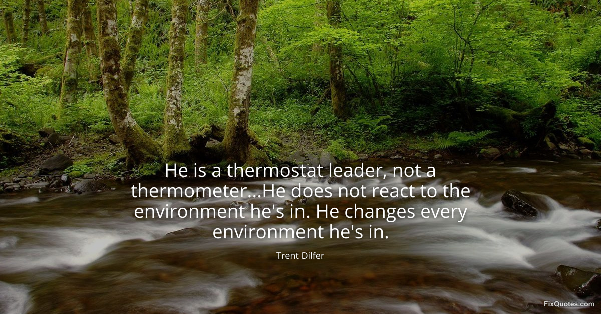 Dilfer, Trent. (2026, January 11). He is a thermostat leader, not a thermometer...He does not react to the environment he's in. He changes every environment he's in. FixQuotes. https://fixquotes.com/quotes/he-is-a-thermostat-leader-not-a-thermometerhe-183715/
