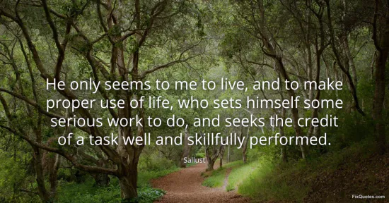 Sallust. "He only seems to me to live, and to make proper use of life, who sets himself some serious work to do, and seeks the credit of a task well and skillfully performed." FixQuotes. January 17, 2026. https://fixquotes.com/quotes/he-only-seems-to-me-to-live-and-to-make-proper-81132/.