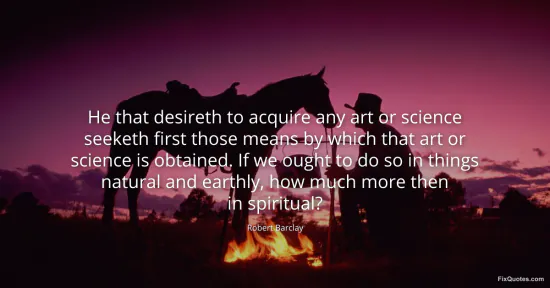 Barclay, Robert. "He that desireth to acquire any art or science seeketh first those means by which that art or science is obtained. If we ought to do so in things natural and earthly, how much more then in spiritual?" FixQuotes. January 17, 2026. https://fixquotes.com/quotes/he-that-desireth-to-acquire-any-art-or-science-77763/.