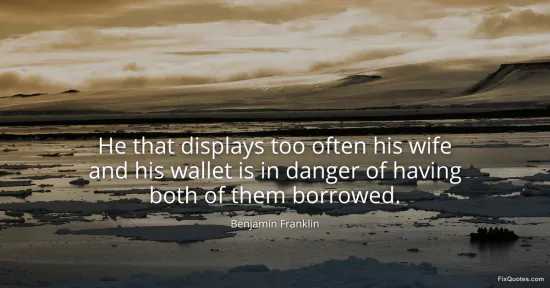 Franklin, Benjamin. (2026, January 15). He that displays too often his wife and his wallet is in danger of having both of them borrowed. FixQuotes. https://fixquotes.com/quotes/he-that-displays-too-often-his-wife-and-his-35397/