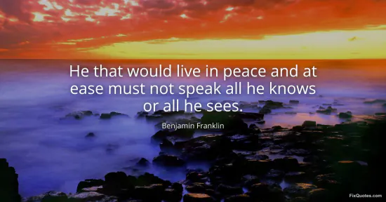 Franklin, Benjamin. "He that would live in peace and at ease must not speak all he knows or all he sees." FixQuotes. January 17, 2026. https://fixquotes.com/quotes/he-that-would-live-in-peace-and-at-ease-must-not-25493/.