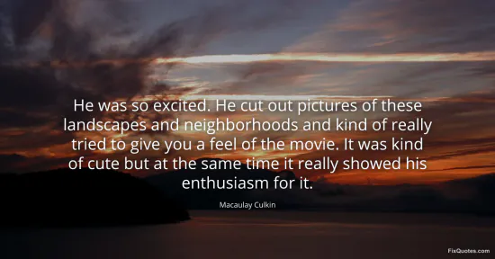 Culkin, Macaulay. (2026, January 16). He was so excited. He cut out pictures of these landscapes and neighborhoods and kind of really tried to give you a feel of the movie. It was kind of cute but at the same time it really showed his enthusiasm for it. FixQuotes. https://fixquotes.com/quotes/he-was-so-excited-he-cut-out-pictures-of-these-132355/