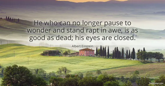 Einstein, Albert. "He who can no longer pause to wonder and stand rapt in awe, is as good as dead; his eyes are closed." FixQuotes. January 15, 2026. https://fixquotes.com/quotes/he-who-can-no-longer-pause-to-wonder-and-stand-34864/.