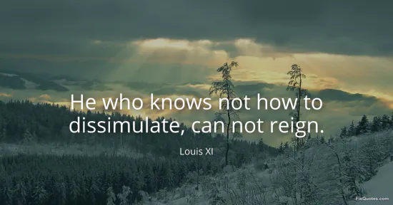 XI, Louis. "He who knows not how to dissimulate, can not reign." FixQuotes. January 14, 2026. https://fixquotes.com/quotes/he-who-knows-not-how-to-dissimulate-can-not-reign-170797/.