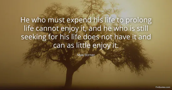 Stirner, Max. (2026, January 16). He who must expend his life to prolong life cannot enjoy it, and he who is still seeking for his life does not have it and can as little enjoy it. FixQuotes. https://fixquotes.com/quotes/he-who-must-expend-his-life-to-prolong-life-134184/