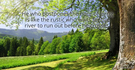 Horace. "He who postpones the hour of living is like the rustic who waits for the river to run out before he crosses." FixQuotes. January 15, 2026. https://fixquotes.com/quotes/he-who-postpones-the-hour-of-living-is-like-the-18280/.