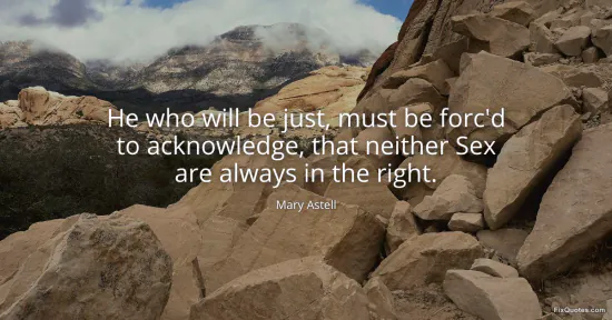 Fair-mindedness, Astell suggests, is not a warm feeling but a discipline: you have to be "forc'd" into admitting an uncomfortable symmetry. In an era that treated male authority as nature itself, she pulls a neat rhetorical switch. She doesn’t plead for women’s virtue or exceptionalism; she demands a standard of judgment that can survive contact with evidence. The sting is in the grammar: justice requires coercion because our default setting is bias, and bias in her world overwhelmingly ran one way.