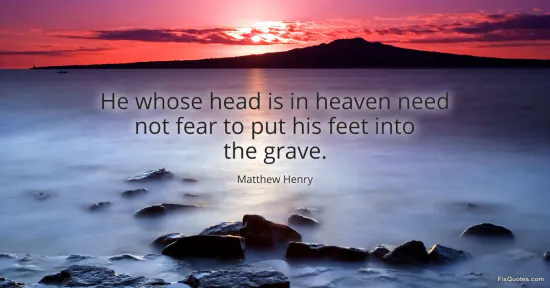 Henry, Matthew. "He whose head is in heaven need not fear to put his feet into the grave." FixQuotes. January 15, 2026. https://fixquotes.com/quotes/he-whose-head-is-in-heaven-need-not-fear-to-put-10389/.