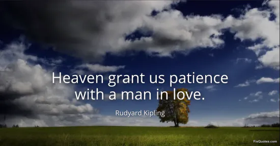 Kipling, Rudyard. "Heaven grant us patience with a man in love." FixQuotes. January 15, 2026. https://fixquotes.com/quotes/heaven-grant-us-patience-with-a-man-in-love-15623/.