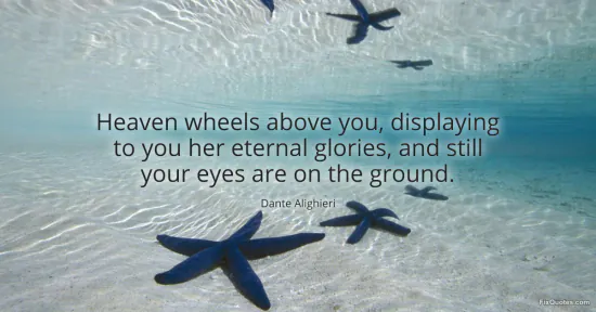 Alighieri, Dante. (2026, January 14). Heaven wheels above you, displaying to you her eternal glories, and still your eyes are on the ground. FixQuotes. https://fixquotes.com/quotes/heaven-wheels-above-you-displaying-to-you-her-30710/