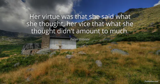Ustinov, Peter. "Her virtue was that she said what she thought, her vice that what she thought didn't amount to much." FixQuotes. January 18, 2026. https://fixquotes.com/quotes/her-virtue-was-that-she-said-what-she-thought-her-22557/.