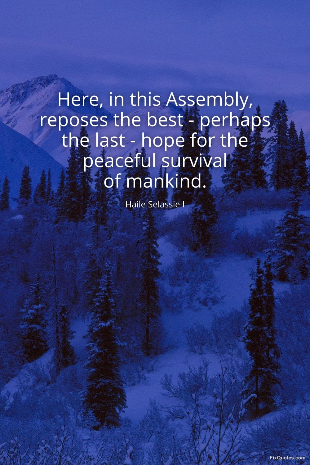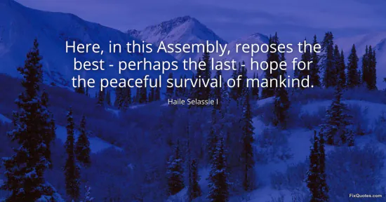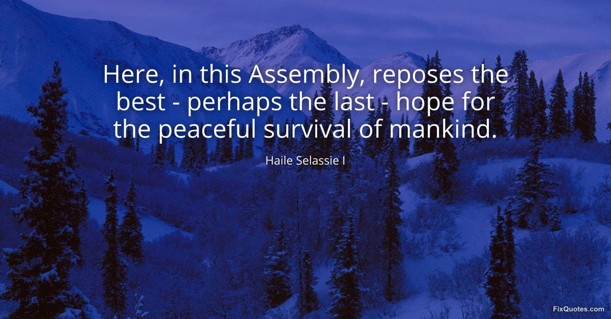 Selassie, Haile. (2026, March 14). Here, in this Assembly, reposes the best - perhaps the last - hope for the peaceful survival of mankind. FixQuotes. https://fixquotes.com/quotes/here-in-this-assembly-reposes-the-best-perhaps-186076/
