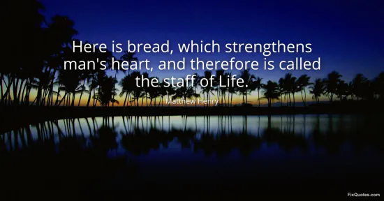 Henry, Matthew. (2026, January 18). Here is bread, which strengthens man's heart, and therefore is called the staff of Life. FixQuotes. https://fixquotes.com/quotes/here-is-bread-which-strengthens-mans-heart-and-10390/