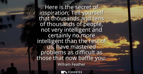 "Here is the secret of inspiration: Tell yourself that thousands and tens of thousands of people, not very intelligent and certainly no more intelligent than the rest of us, have mastered problems as difficult as those that now baffle you"