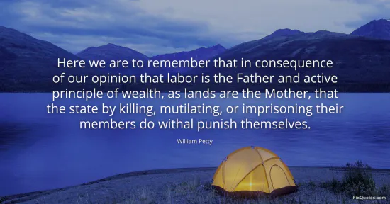 Petty slips a moral warning into what looks like cold-blooded accounting: treat people as the active principle of wealth, and suddenly state violence reads less like justice and more like self-sabotage. The line’s power comes from its almost mechanical logic. He doesn’t plead for mercy; he balances a ledger. Labor fathers wealth, land mothers it, and the state that kills or cripples its own laborers is, by Petty’s lights, liquidating its productive capital.