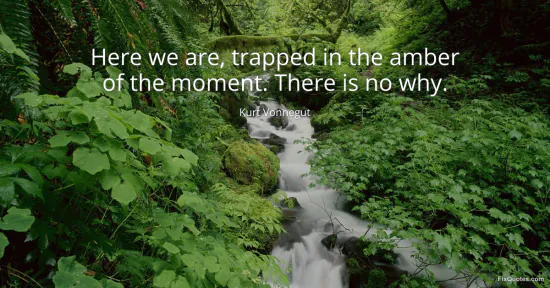 Vonnegut, Kurt. "Here we are, trapped in the amber of the moment. There is no why." FixQuotes. January 14, 2026. https://fixquotes.com/quotes/here-we-are-trapped-in-the-amber-of-the-moment-32376/.