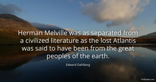 Dahlberg, Edward. (2026, January 17). Herman Melville was as separated from a civilized literature as the lost Atlantis was said to have been from the great peoples of the earth. FixQuotes. https://fixquotes.com/quotes/herman-melville-was-as-separated-from-a-civilized-50803/