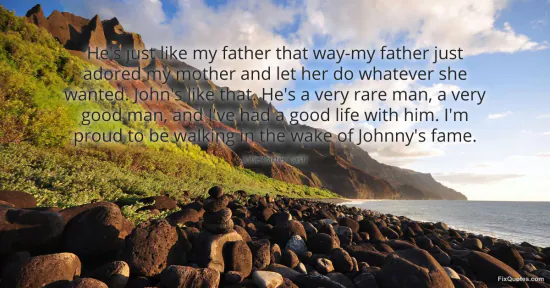 "He's just like my father that way-my father just adored my mother and let her do whatever she wanted. John's like that. He's a very rare man, a very good man, and I've had a good life with him. I'm proud to be walking in the wake of Johnny's fame." FixQuotes, 15 Jan. 2026, https://fixquotes.com/quotes/hes-just-like-my-father-that-way-my-father-just-146690/. Accessed 4 Mar. 2026.