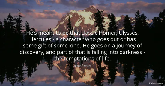 Redford, Robert. "He's meant to be that classic Homer, Ulysses, Hercules - a character who goes out or has some gift of some kind. He goes on a journey of discovery, and part of that is falling into darkness - the temptations of life." FixQuotes. February 18, 2026. https://fixquotes.com/quotes/hes-meant-to-be-that-classic-homer-ulysses-85511/.