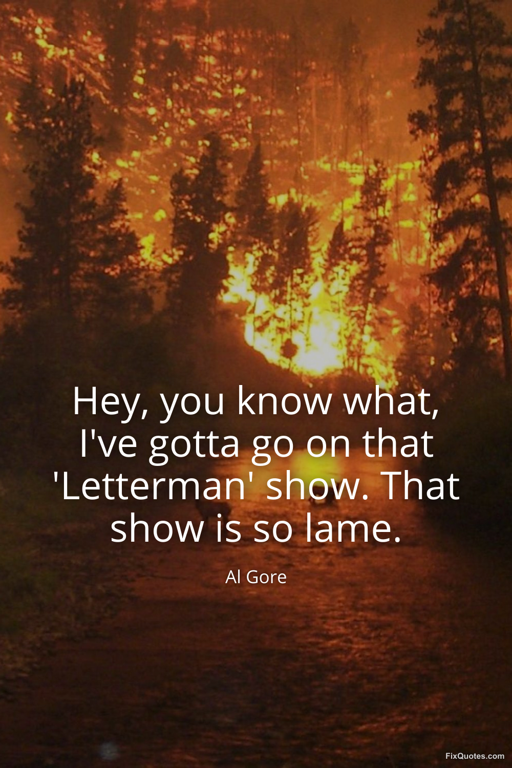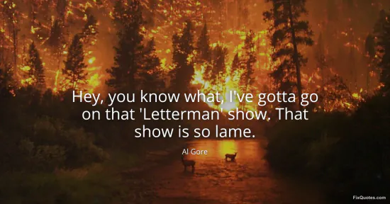 Gore, Al. "Hey, you know what, I've gotta go on that 'Letterman' show. That show is so lame." FixQuotes. January 18, 2026. https://fixquotes.com/quotes/hey-you-know-what-ive-gotta-go-on-that-letterman-9596/.