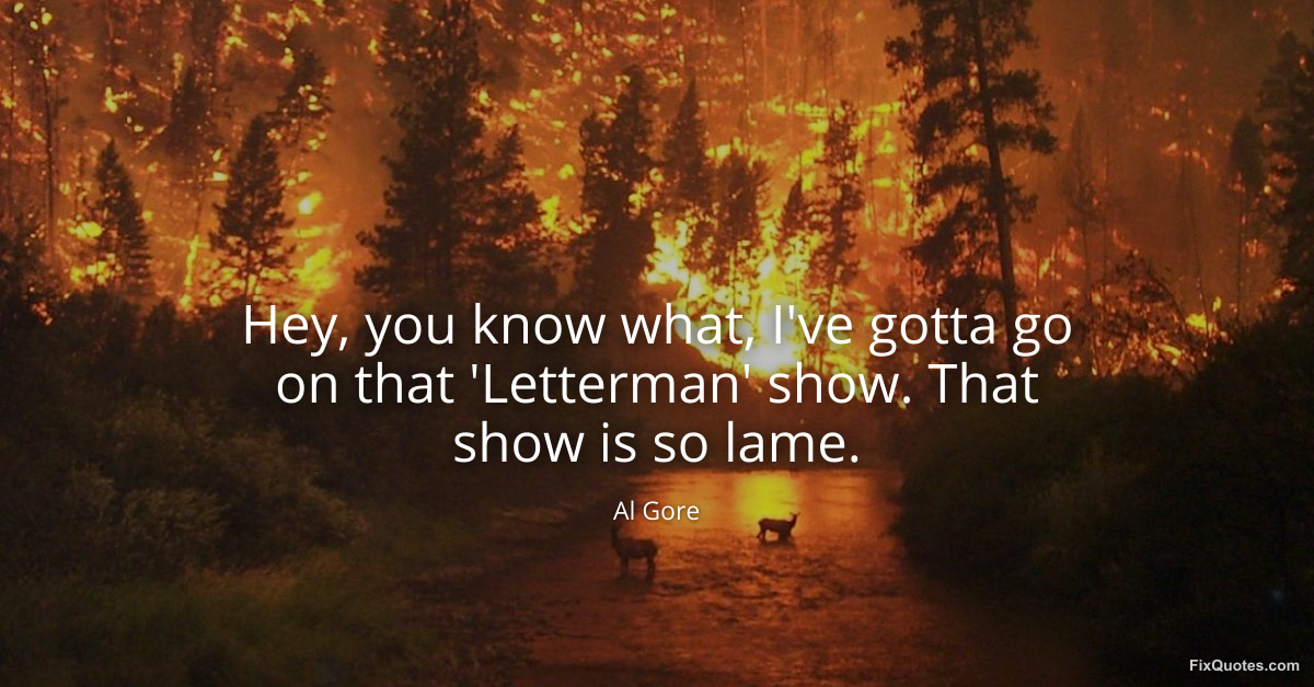 Gore, Al. (2026, January 18). Hey, you know what, I've gotta go on that 'Letterman' show. That show is so lame. FixQuotes. https://fixquotes.com/quotes/hey-you-know-what-ive-gotta-go-on-that-letterman-9596/
