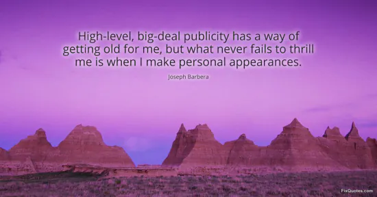 Barbera, Joseph. "High-level, big-deal publicity has a way of getting old for me, but what never fails to thrill me is when I make personal appearances." FixQuotes. January 18, 2026. https://fixquotes.com/quotes/high-level-big-deal-publicity-has-a-way-of-18659/.