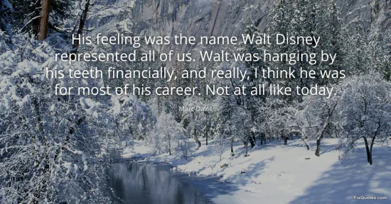 Davis, Marc. "His feeling was the name Walt Disney represented all of us. Walt was hanging by his teeth financially and really I think he was for most of his career. Not at all like today." FixQuotes. January 17, 2026. https://fixquotes.com/quotes/his-feeling-was-the-name-walt-disney-represented-55985/.