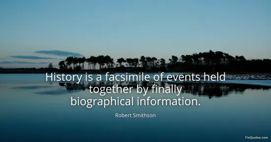 Smithson, Robert. "History is a facsimile of events held together by finally biographical information." FixQuotes. January 15, 2026. https://fixquotes.com/quotes/history-is-a-facsimile-of-events-held-together-by-164929/.