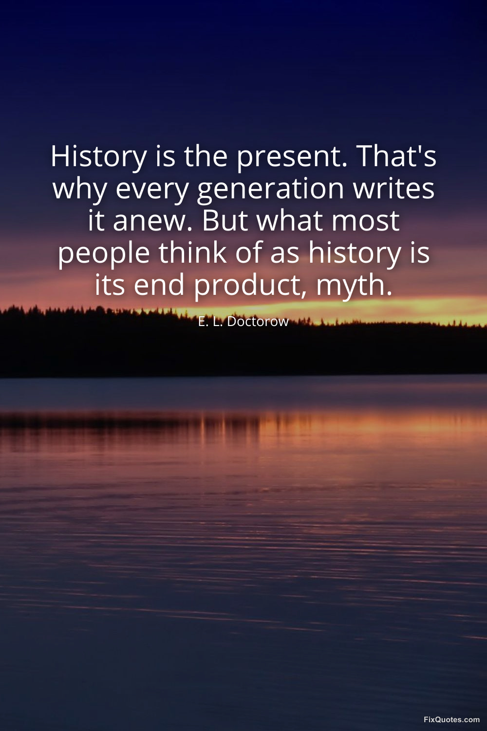 Doctorow, E. L. (2026, January 15). History is the present. That's why every generation writes it anew. But what most people think of as history is its end product, myth. FixQuotes. https://fixquotes.com/quotes/history-is-the-present-thats-why-every-generation-143216/
