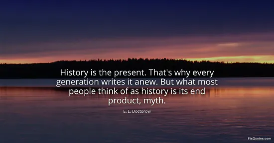 Doctorow, E. L. "History is the present. That's why every generation writes it anew. But what most people think of as history is its end product, myth." FixQuotes. January 15, 2026. https://fixquotes.com/quotes/history-is-the-present-thats-why-every-generation-143216/.
