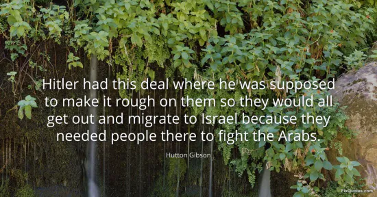 Gibson, Hutton. "Hitler had this deal where he was supposed to make it rough on them so they would all get out and migrate to Israel because they needed people there to fight the Arabs." FixQuotes. January 16, 2026. https://fixquotes.com/quotes/hitler-had-this-deal-where-he-was-supposed-to-125697/.