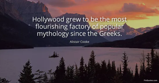 Cooke, Alistair. "Hollywood grew to be the most flourishing factory of popular mythology since the Greeks." FixQuotes. January 15, 2026. https://fixquotes.com/quotes/hollywood-grew-to-be-the-most-flourishing-factory-42978/.