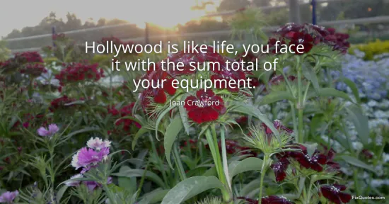 Crawford, Joan. (2026, January 15). Hollywood is like life, you face it with the sum total of your equipment. FixQuotes. https://fixquotes.com/quotes/hollywood-is-like-life-you-face-it-with-the-sum-97932/