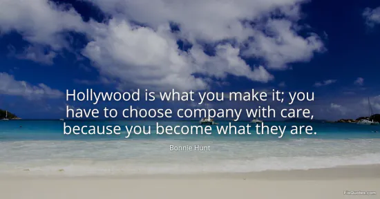 Hunt, Bonnie. (2026, February 16). Hollywood is what you make it; you have to choose company with care, because you become what they are. FixQuotes. https://fixquotes.com/quotes/hollywood-is-what-you-make-it-you-have-to-choose-133411/